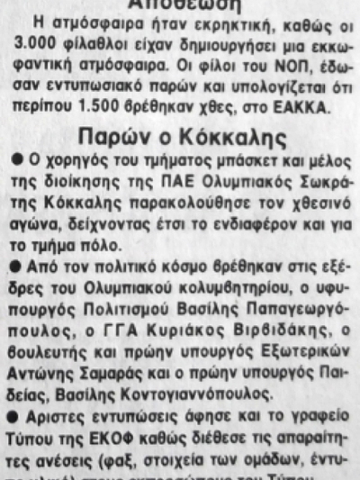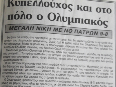Παραθέτουμε ένα απόσπασμα από μια ειδική έκδοση του Ναυτικού Ομίλου για την συμμετοχή της ομάδας στον τελικό.