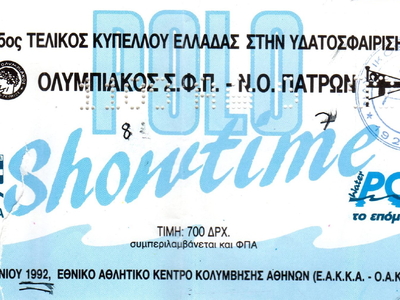 Ύστερα από ένα συναρπαστικό αγώνα (3 Ιουνίου 1992) και πολλά παράπονα από τους πατρινούς για άνισες αποφάσεις της διαιτησίας, ο Ολυμπιακός νίκησε 9-8 και στέφθηκε Κυπελλούχος Ελλάδος και για πρώτη φορά στην ιστορία του νταμπλούχος.