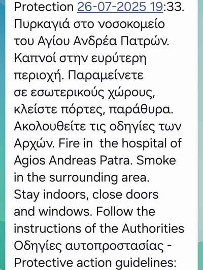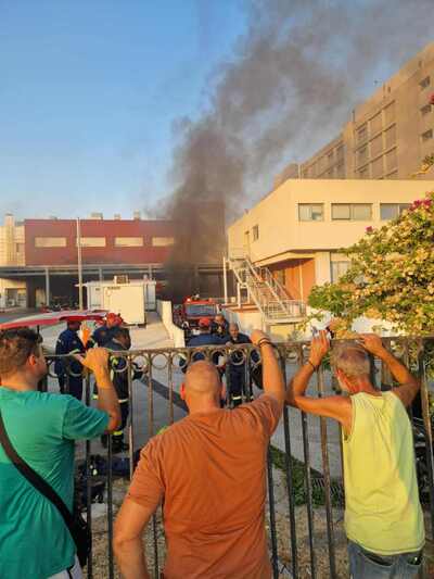 Το νοσοκομείο σήμερα δεν εφημερεύει. Η φωτιά ξέσπασε στη νέα πτέρυγα του νοσοκομείου και φαίνεται να ξεκίνησε από τα υπόγεια, όπου σύμφωνα με πληροφορίες υπάρχουν υλικά
