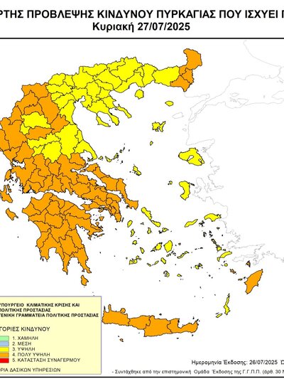 Πολύ υψηλή κατηγορία κινδύνου ( 4) προβλέπει ή Γενική Γραμματεία Πολιτικής Προστασίας