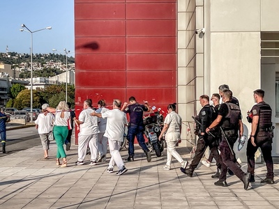 Το προσωπικό του νοσοκομείου και ο Ερυθρός Σταυρός, με ψυχραιμία αλλά και απόλυτη αίσθηση ευθύνης, ενεργοποίησε άμεσα το πρωτόκολλο εκκένωσης και ασφάλειας, εξασφαλίζοντας την απομάκρυνση ασθενών και εργαζομένων από τους κοντινούς χώρους. Οι εικόνες που καταγράφηκαν εκείνες τις κρίσιμες ώρες είναι πραγματικά συγκλονιστικές: ασθενείς σε φορεία, γιατροί και νοσηλευτές με μάσκες, καπνός να ξεπροβάλλει από τα παράθυρα του υπογείου, και άνδρες της Πυροσβεστικής να δίνουν μάχη για να περιορίσουν τις φλόγες.