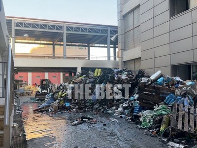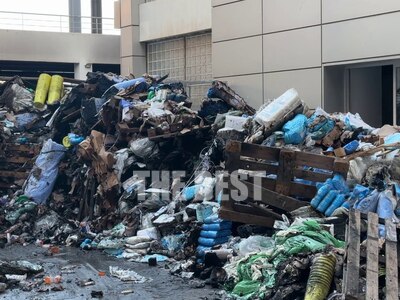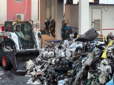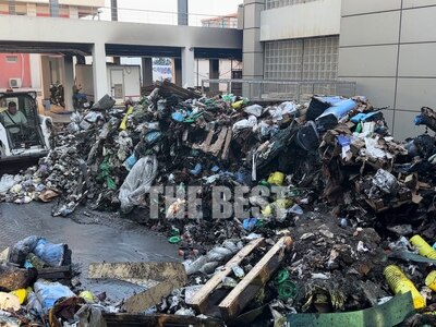 Ακόμη και το πρωί της Δευτέρας συνεργεία της καθαριότητας του δήμου Πατρέων, μάζευαν τα καμμένα από το υπόγειο του νοσοκομείου "Ο Άγιος Ανδρέας" το οποίο το περασμένο Σάββατο παραδόθηκε στις φλόγες.