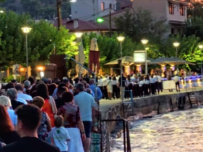 Στη λιτάνευση της ιεράς εικόνας του Αγίου Παντελεήμονος, πολιούχου της Αιγείρας, αργά το απόγευμα του Σαββάτου 26-7, παραμονή της εορτής