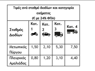 Συγκεκριμένα, η σταδιακή λειτουργία του συστήματος χρέωσης αφορά τον μετωπικό σταθμό Πύργου και στις δύο κατευθύνσεις και τον πλευρικό σταθμό Αμαλιάδας με χρέωση από/προς Πύργο.