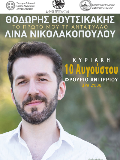 Πιο συγκεκριμένα, ο Δήμος Ναυπακτίας παρουσιάζει τη μουσική εκδήλωση «Το πρώτο μου τριαντάφυλλο» με τον Θοδωρή Βουτσικάκη, την Κυριακή 10 Αυγούστου 2025 και ώρα 21:00, στο εμβληματικό Φρούριο Αντιρρίου. Η εκδήλωση συνδιοργανώνεται με την Εφορεία Αρχαιοτήτων Αιτωλοακαρνανίας και Λευκάδος και τον Πολιτιστικό Σύλλογο Αντιρρίου «Το Καστέλι», στο πλαίσιο των καθιερωμένων εκδηλώσεων του Υπουργείου Πολιτισμού για την Πανσέληνο του Αυγούστου, οι οποίες αναδεικνύουν τα μνημεία και τους αρχαιολογικούς χώρους της χώρας μέσα από τη δύναμη της μουσικής και του πολιτισμού.