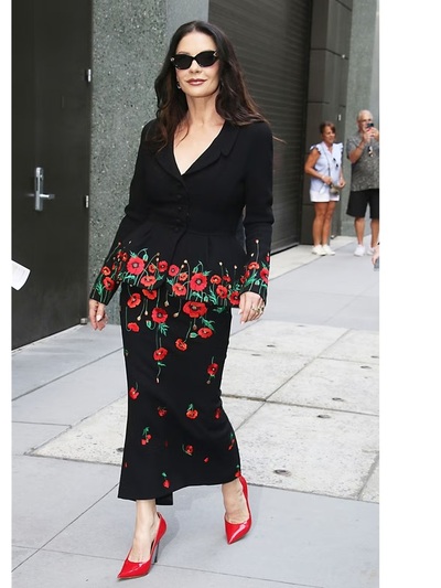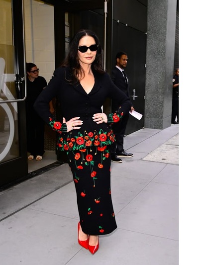 Στο κατώφλι των 56 της χρόνων, η Βρετανίδα ηθοποιός Κάθριν Ζέτα Τζόουνς εθεάθη στη Νέα Υόρκη με ένα ιδιαίτερο, μαύρο ταγιέρ.