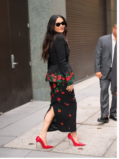Η Τζόουνς κάνει αναφορά στο ρόλο με ένα vintage σύνολο Yanina Spring 2023 Couture. Αυτό συνοψίζει τα επίκαιρα trends των θηλυκών ταγιέρ, της pencil φούστας, των ρομαντικών florals και της γραμμής peplum. Αναζητήστε κάτι τέτοιο με τις πρώτες ψύχρες, σε αυτές τις εικόνες στη Νέα Υόρκη έχει συνδυαστεί με κλασικές ψηλοτάκουνες γόβες Casadei. Επιπλέον το outfit προωθεί το κίνημα της ανακύκλωσης στη μόδα, καλώντας μας να ψάξουμε για παλιά κομμάτια στην γκαρνταρόμπα μας.
