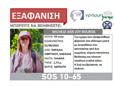 Ένα πέπλο μυστηρίου έχει απλωθεί πάνω από την παραλία Οφρυνίου στην Καβάλα μετά τη ξαφνική εξαφάνιση της 59χρονης Βρετανίδας τουρίστριας Μichele Ann Joy Bourda.