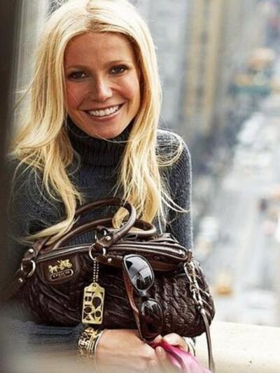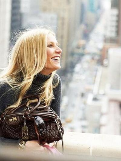 Η Γκουίνεθ Πάλτροου κρατάει μια τσάντα Coach για τις διαφημιστικές ανάγκες της εταιρείας. Η 38χρονη ηθοποιός είναι το πρόσωπο της Coach για την φετινή διεθνής καμπάνια που σηματοδοτεί την 70η επέτειο της σειράς.