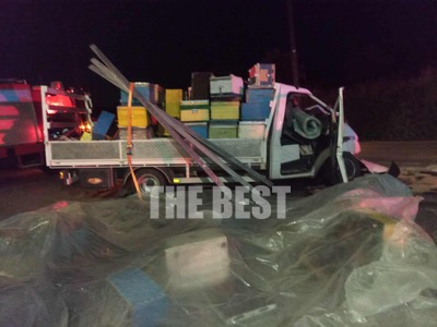 Νταλίκα συγκρούστηκε με σφοδρότητα με φορτηγάκι που μετέφερε κυψέλες με μελίσσια, το οποίο οδηγούσε ένας 60χρονος κάτοικος Καρπέτα. Από τη σφοδρή σύγκρουση, ο άτυχος άνδρας εγκλωβίστηκε στο όχημά του, με αποτέλεσμα να χρειαστεί η επέμβαση της Πυροσβεστικής.