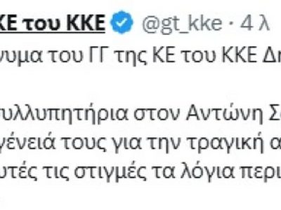 Συλλυπητήριο μήνυμα και από τον γενικό γραμματέα του ΚΚΕ, Δημήτρη Κουτσούμπα: «Τα ειλικρινή μου συλλυπητήρια στον Αντώνη Σαμάρα, την σύζυγό του Γεωργία και την οικογένειά τους για την τραγική απώλεια της αγαπημένης τους κόρης, Λένας. Αυτές τις στιγμές τα λόγια περισσεύουν, μόνο κουράγιο και δύναμη σε όλους».