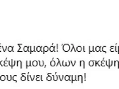 «Δεν το χωράει ο νους αυτό με την Λένα Σαμαρά! Όλοι μας είμαστε συγκλονισμένοι για την απώλεια της 34χρονης κοπέλας. Η σκέψη μου, όλων η σκέψη, είναι με τους γονείς της, τον Αντώνη και τη Γεωργία! Ο Θεός να τους δίνει δύναμη» έγραψε ο αντιπρόεδρος της κυβέρνησης, Κωστής Χατζηδάκης.