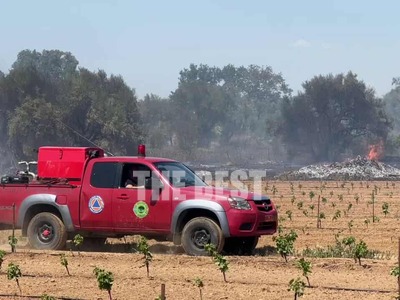 Η φωτιά πυροσβεστική ενεργεί με ισχυρές δυνάμεις. Το έργο της συνδράμουν μηχανήματα έργου και υδροφόρες ΟΤΑ.