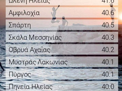 Αχαΐα, Ηλεία και Αιτωλοακαρνανία κατέγραψαν πέντε από τις οκτώ κορυφαίες θερμοκρασίες της χθεσινής ημέρας