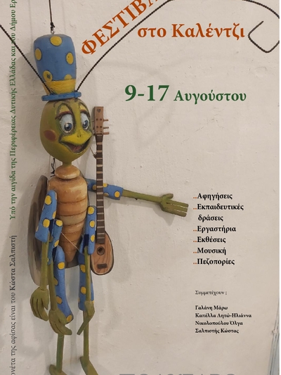 Το Φεστιβάλ στο Καλέντζι με πρωτοβουλία του Πολύεδρου, γίνεται υπό την αιγίδα της Περιφέρειας Δυτικής Ελλάδας και του Δήμου Ερυμάνθου.