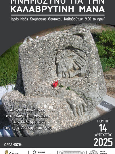 Την Πέμπτη 14 Αυγούστου 2025 και ώρα 9:00 το πρωί, θα τελεστεί το καθιερωμένο ετήσιο μνημόσυνο για την Καλαβρυτινή Μάνα, στον Μητροπολιτικό Ιερό Ναό Κοιμήσεως της Θεοτόκου στην μαρτυρική πόλη των Καλαβρύτων.