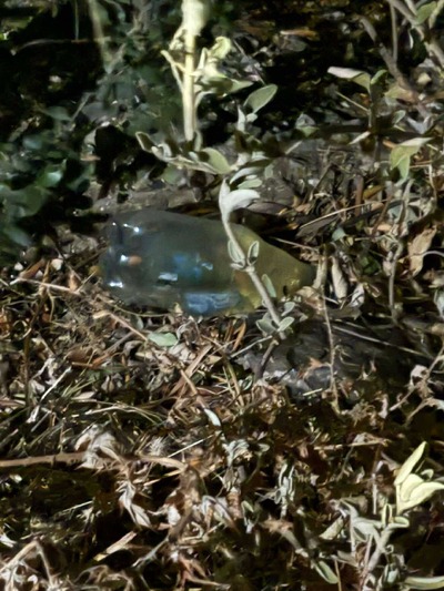 Στο πλαίσιο της περαιτέρω έρευνας, εντοπίστηκε ένα μπουκάλι που περιείχε πιθανόν εύφλεκτο υλικό, το οποίο, όπως προέκυψε, είχε απορριφθεί από έναν εκ των κατηγορουμένων στην περιοχή δασικής έκτασης.