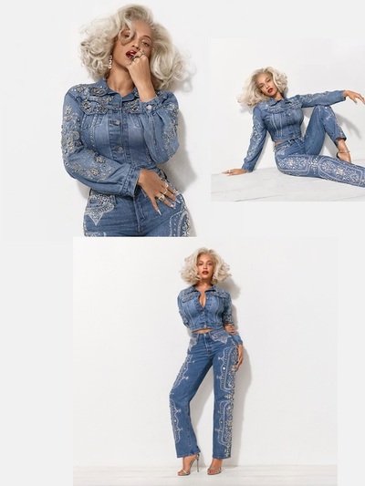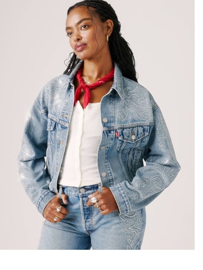 Oι γραμμές υπογραμμίζουν βέβαια τις περίφημες καμπύλες της Μπιγιονσέ. Μιλάμε για κοντά μπουφάν στολισμένα με κρύσταλλα ή κορδέλες κορσέ, σορτς και τζιν που υμνούν τη σιλουέτα- κλεψύδρα και ένα ανανεωμένο 501 για όλους τους σωματότυπους, που «παίζει» με τα ξεθωριάσματα και το διάκοσμο.