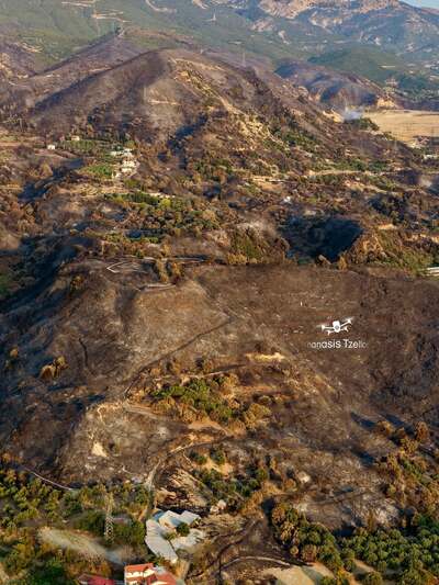 Οι φλόγες έχουν σβήσει, αλλά οι εικόνες αποτυπώνουν το μέγεθος της καταστροφής. Καμμένα σπίτια, καμένες εκτάσεις και τοπία που μοιάζουν να έχουν αλλάξει για πάντα.