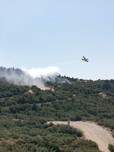 Για την κατάσβεση έχουν κινητοποιηθεί 22 πυροσβέστες με μία ομάδα πεζοπόρου της 6ης ΕΜΟΔΕ, έξι οχήματα, τρία αεροπλάνα και ένα ελικόπτερο.