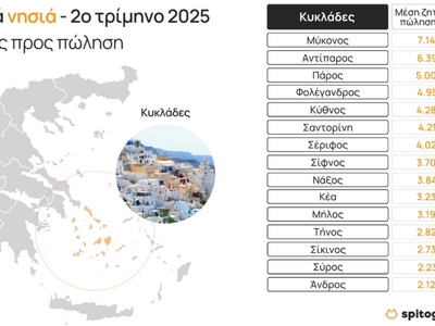 «Τα νησιά των Κυκλάδων αποτελούν για πολλούς τον απόλυτο καλοκαιρινό προορισμό, καθώς προσφέρουν επιλογές που καλύπτουν κάθε προτίμηση. Από την κοσμοπολίτικη Μύκονο μέχρι την εναλλακτική Αμοργό, η ποικιλομορφία των Κυκλάδων προσφέρει λύσεις για όλα τα γούστα και προτιμήσεις. Η ποικιλομορφία τους αντικατοπτρίζεται και στην κτηματαγορά», αναφέρεται στην ανάλυση. Κατά το 2ο τρίμηνο του 2025, τα περισσότερα Κυκλαδονήσια καταγράφουν αυξήσεις στις ΜΖΤ πώλησης κατοικιών, με εξαίρεση τη Νάξο, τη Σέριφο και τη Σίκινο, όπου οι τιμές παραμένουν σχετικά σταθερές σε σύγκριση με την αντίστοιχη περίοδο του 2024. Σημαντική ετήσια άνοδος, άνω του 20%, παρατηρείται σε Αντίπαρο και Φολέγανδρο, συγκριτικά με το 2ο τρίμηνο του 2024. Τα ακριβότερα νησιά των Κυκλάδων την ίδια περίοδο είναι η Μύκονος, η Αντίπαρος και η Πάρος.