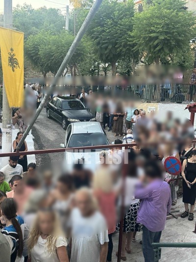 Το πλήθος που συγκεντρώθηκε σην εκκλησία του Αγίου Φανουρίου, στην περιοχή της Γούβας, στην Πάτρα προκαλεί αδιαχώρητο στους δρόμους.