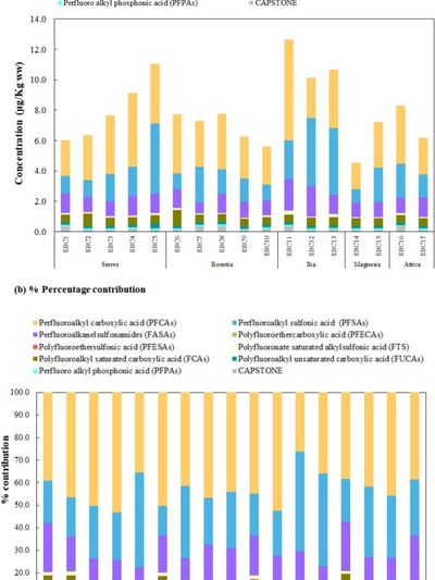 Σχεδόν σε όλα τα δείγματα κυριάρχησαν τα PFSAs, με το PFOS να καταγράφει τις υψηλότερες τιμές. Ακολούθησαν τα PFCAs, ενώ σε μικρότερα ποσοστά βρέθηκαν FASAs και PFECAs.