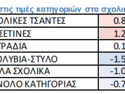 Σε σχέση με τις τιμές των σχολικών ειδών, οι τιμές στα Σουπερμάρκετ τον Αύγουστο 2025 είναι στα ίδια επίπεδα με το 2024, συγκεκριμένα καταγράφεται μικρή μείωση 0,70% μεσοσταθμικά στις σχετικές κατηγορίες. Όπως φαίνεται και στον πίνακα 2, οι διακυμάνσεις στις επιμέρους υποκατηγορίες είναι πολύ μικρές με τη γραφική ύλη να παρουσιάζει μείωση και τα είδη μεταφοράς (τσάντες, κασετίνες) μικρή αύξηση.