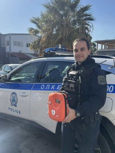 Η ενέργεια του γίνεται παράδειγμα προς μίμηση τη στιγμή που τα περιπολικά σε όλη την Ελλάδα που είναι εξοπλισμένα με αυτόματο απινιδωτή είναι…λιγότερα από 5!