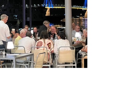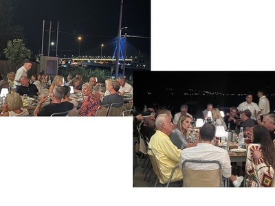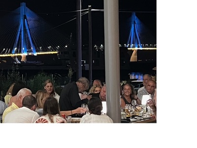*Ακολούθησε δείπνο από το Πανεπιστήμιο Πατρών στην σύγχρονη ψαροταβέρνα La Marina όπου οι συντελεστές της εκδήλωσης συνάντησαν από κοντά τον Ευάγγελο Μυτιληναίο. Ο μεγάλος υποστηρικτής της συναυλίας είναι πρόεδρος της Metlen Energy & Metals (επιχειρηματικού κολοσσού με παρουσία σε 60 χώρες και πάνω από 6000 εργαζομένους) και πρόεδρος της Πανευρωπαϊκής Ένωσης Eurometaux. Όπως εξήγησε ο ίδιος, περιστοιχισμένος από συγγενείς και συνεργάτες, έχει ιδιαίτερους δεσμούς με την Πάτρα αφού εδώ μεγάλωσαν τα παιδιά του και έλκει την καταγωγή της η πρώην σύζυγός του, Αντριάνα Γιώτη.