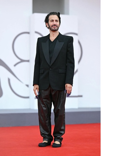 Ο Marc Jacobs ήταν απλά ο εαυτός του στη Βενετία. Χαρούμενος για το ντοκιμαντέρ που του αφιέρωσε η «κολλητή» του φίλη Σοφία Κόπολα, ντύθηκε ανδρόγυνα όπως συνηθίζει. Φιόγκος στο κεφάλι, κομψά σακάκια από σατέν και τουίντ, δερμάτινο barel παντελόνι και «μπαλαρινάκια» δεν αποτέλεσαν έκπληξη. Δεν έλειψαν τα μακριά νύχια- σήμα κατατεθέν του, σε μπλε χρώμα με κρύσταλλα.