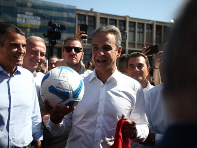 Ο πρωθυπουργός Κυριάκος Μητσοτάκης συνέχισε την περιοδεία του στη ΔΕΘ. Επισκέφθηκε την Hellenic Energy, που είναι αθλητικός χορηγός καλαθοσφαίρισης, όπου οι άνθρωποί της του χάρισαν μία μπάλα του μπάσκετ και μία αθλητική φανέλα με το όνομά του.