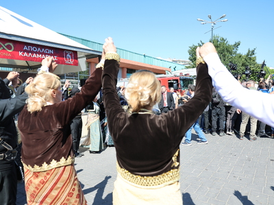 Επίσης, ο πρωθυπουργός έκανε στάση και στο περίπτερο του Απόλλωνα Καλαμαριάς όπου η υποδοχή του έγινε με ποντιακούς χορούς και λύρα, ενώ η διοίκηση του Συλλόγου του δώρισαν μια ανθοδέσμη και μια μπάλα.