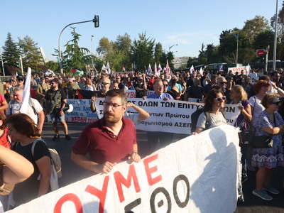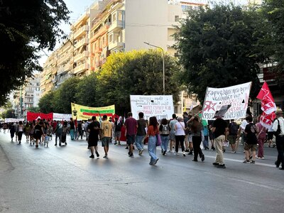 Ραντεβού στους δρόμους της Θεσσαλονίκης έδωσαν συνδικαλιστικές οργανώσεις, σωματεία εργαζομένων, συλλογικότητες, φοιτητικοί σύλλογοι κ.ά., με φόντο την ομιλία του Κυριάκου Μητσοτάκη στο Συνεδριακό Κέντρο «Ιωάννης Βελλίδης», στα εγκαίνια της 89ης ΔΕΘ.