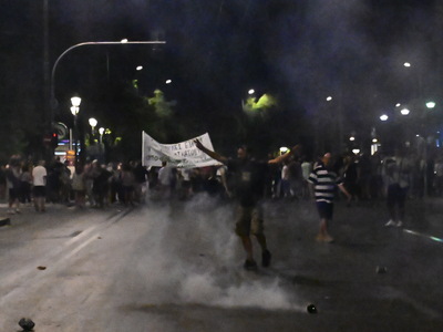 Άμεσα, οι δυνάμεις των ΜΑΤ απάντησαν ρίχνοντας χημικά και τελικά διέλυσαν τους δράστες στο ύψος μεταξύ Ερμού και Πανεπιστημίου.
