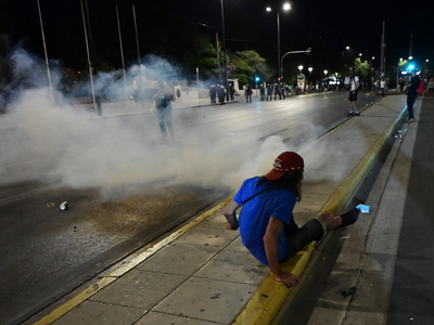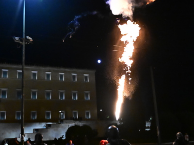 Μόλις έληξε το συλλαλητήριο για τα Τέμπη, περίπου 20 άτομα έριξαν μολότοφ, με αποτέλεσμα να ξεσπάσει φωτιά, προκαλώντας αναταραχή ανάμεσα στους διαδηλωτές.