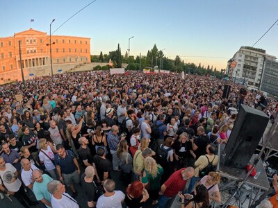 Μετά το πανελλαδικό κάλεσμα της Μαρίας Καρυστιανού για συγκεντρώσεις σε όλες τις πόλεις της χώρας, εκατοντάδες πολίτες κάθε ηλικίας συρρέουν από νωρίς στο Σύνταγμα για να διεκδικήσουν δικαιοσύνη για τα θύματα του τραγικού δυστυχήματος.