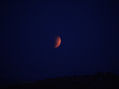 Έναρξη ολικής έκλειψης 20:30: Η Σελήνη «μαυρίζει» και αποκτά κόκκινη απόχρωση (ολικότητα).