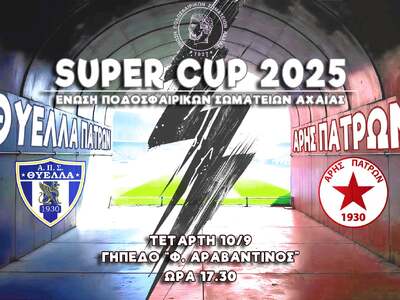 Την Τετάρτη 10/9/2025, στις 17.30, στο γήπεδο Φώτης Αραβαντινός της Θύελλας, θα διεξαχθεί ο τελικός για το 18ο Super Cup της Ε.Π.Σ. Αχαΐας, ανάμεσα στην Πρωταθλήτρια 2024-2025, Θύελλα Πατρών και τον Κυπελλούχο 2024- 2025, Άρη Πατρών.
