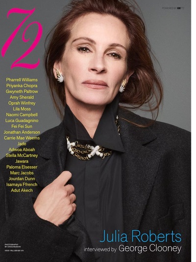 Η Ρόμπερτς ποζάρει με πουκάμισο και σακάκι Phoebe Philo και κοσμήματα Tiffany & Co. Φωτογραφήθηκε στο Λονδίνο από τον Craig McDean, με styling της Elizabeth Stewart. Εδωσε μάλιστα συνέντευξη στον φίλο και συνάδελφό της Τζορτζ Κλούνει. Ακόμα στις σελίδες του 72 φιλοξενούνται προσωπικότητες μόδας, θεάματος και τέχνης όπως οι Jonathan Anderson, Stella McCartney, Marc Jacobs, Gwyneth Paltrow, Oprah Winfrey κ.α.