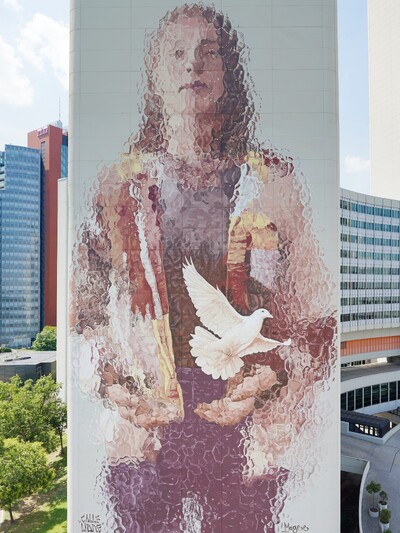 Τα θέματα που εξερευνά μέσα από τις τοιχογραφίες του αγγίζουν όλους μας: