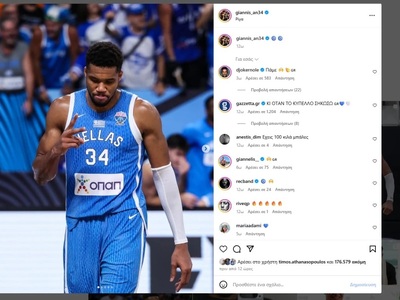 Ο Γιάννης Αντετοκούνμπο πόσταρε μια φωτογραφία του από τον προημιτελικό με τους Λιθουανός και ο Νόβακ Τζόκοβιτς φρόντισε να στείλει το δικό του μήνυμα