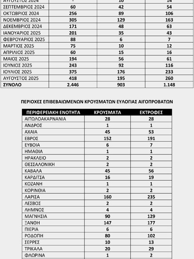 Δείτε τους πίνακες με τα επιβεβαιωμένα κρούσματα και τις θανατώσεις ζώων