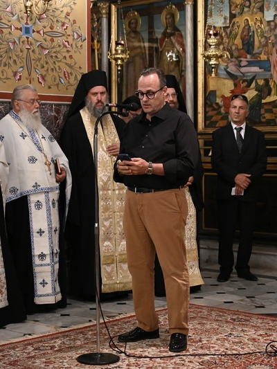 «Η περιοχή μας πενθεί έναν καλό οικογενειάρχη και καλό φίλο, που έφυγε πρόωρα από τον κόσμο. Με τη ζωή του δόξασε τον τόπο μας, βοηθώντας ηθικά και υλικά, διακριτικά, πολλούς συμπολίτες μας. Είχε μεγάλο θάρρος, παρ’όλο που ήταν βαριά άρρωστος στις τελευταίες του στιγμές. Η ζωή του ας αποτελέσει παράδειγμα για όλους εμάς» σημείωσε μεταξύ άλλων στον επικήδειο λόγο του ο Σεβασμιώτατος Μητροπολίτης κ. Ιερώνυμος, για να ακολουθήσει η ανάγνωση του ψηφίσματος του Περιφερειακού Συμβουλίου Δυτικής Ελλάδας από τον πρόεδρο κ. Παΐσιο. Φορτισμένος συναισθηματικά ήταν ο λόγος του Περιφερειάρχη Δυτικής Ελλάδας κ. Νεκτάριου Φαρμάκη, που μεταξύ άλλων σημείωσε: «Μου φαίνεται προσωπικά αδύνατον που δεν θα ξαναδεχτούμε μήνυμα ή τηλέφωνό σου για κάποιο ζήτημα, μια συμβουλή, μια ιδέα σου. Από την καρδιά μου σου εκφράζω ένα μεγάλο ευχαριστώ, να ξέρεις ότι ήμουν πολύ περήφανος όταν αποφάσισες να συμπορευτείς μαζί μας στις πρόσφατες περιφερειακές εκλογές. Το χνάρι σου είναι βαθύ και δεν θα σβήσει. Η προσπάθειά μας θα συνεχιστεί μέχρι να γίνουν όλα όσα ονειρευόσουν. Έζησες περήφανος και ελεύθερος και δεν έζησες μόνο για σένα αλλά και για τους άλλους».