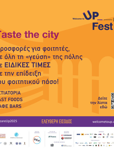 Στο πλαίσιο της δράσης “Taste the City”, οι πρωτοετείς έχουν την ευκαιρία να γνωρίσουν την πόλη μέσα από τις γεύσεις της, απολαμβάνοντας προνομιακές τιμές σε καταστήματα εστίασης και αναψυχής.