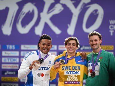 Ο Έλληνας πρωταθλητής, με άλμα στα 6,00μ., κατέκτησε τη δεύτερη θέση στον τελικό του άλματος επί κοντώ στο Τόκιο και έζησε κάθε στιγμή του στο βάθρο μαζί με τον κολλητό του και παγκόσμιο πρωταθλητή, Μόντο Ντουπλάντις, αλλά και τον φίλο του, Κέρτις Μάρσαλ, που κατέκτησε την τρίτη θέση.