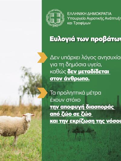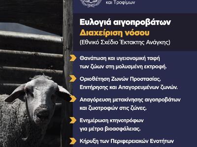 Η ευλογιά των αιγοπροβάτων είναι ζωονόσος που προσβάλλει αιγοπρόβατα και μόνο. Πρόκειται για μια ιδιαίτερα σοβαρή ασθένεια, η οποία προκαλεί απώλειες στον κτηνοτροφικό τομέα. Ωστόσο, δεν υπάρχει λόγος ανησυχίας για τη δημόσια υγεία, καθώς δεν μεταδίδεται στον άνθρωπο.