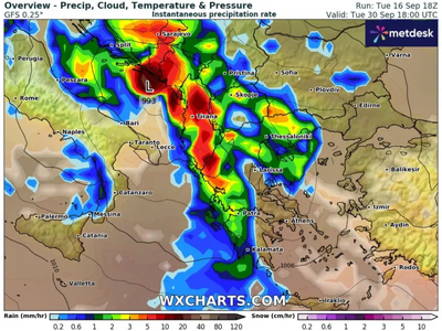 Η αλλαγή του καιρού φαίνεται πως έρχεται το τελευταίο Σαββατοκύριακο του Σεπτεμβρίου, σύμφωνα με τους χάρτες της υπηρεσίας προβολής δεδομένων πρόγνωσης καιρού wxcharts.com.
