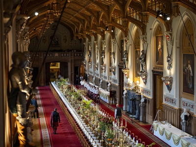 Με ένα εντυπωσιακό, «πλούσιο» δείπνο στο Κάστρο του Ουίνδσορ -σε ένα τραπέζι 47 μέτρων με 139 κεριά και 1.452 μαχαιροπίρουνα, που χρειάστηκε μία εβδομάδα για να στρωθεί- έπεσε χθες η αυλαία της πρώτης ημέρας της επίσημης επίσκεψης του αμερικανικού προεδρικού ζεύγους στη Βρετανία, που ολοκληρώνεται το απόγευμα της Πέμπτης και αφού προηγουμένως ο Ντόναλντ Τραμπ συναντηθεί με τον Βρετανό πρωθυπουργό, Κιρ Στάρμερ.