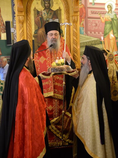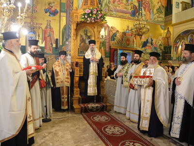 Στίς μεθεόρτες Ἀκολουθίες προέστη ὁ σεβασμιότατος Μητροπολίτης Πατρών κ.κ. Χρυσόστομος, μέ τήν συγχοροστασία τοῦ Θεοφιλεστάτου Ἐπισκόπου Κερνίτσης κ. Χρυσάνθου.